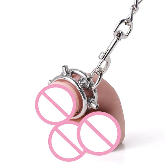 Cock Head Glans Ring Stainless Steel Spikes Toy with Leash