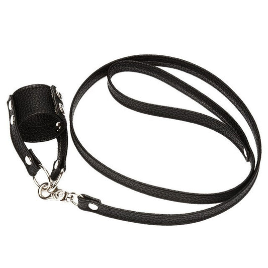 Black BDSM Faux Leather Testicle Pulling Collar and Leash