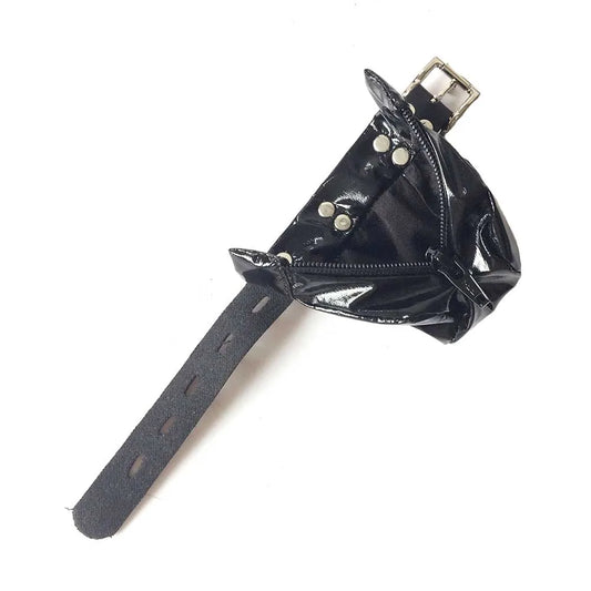 Mens Shiny Black Patent Leather Lockable Chastity Bag