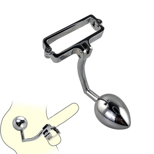 Stainless Steel Scrotum Clamp with Anal Butt Plug