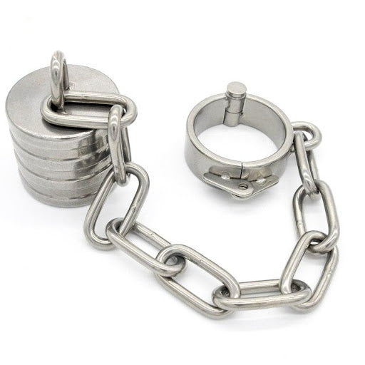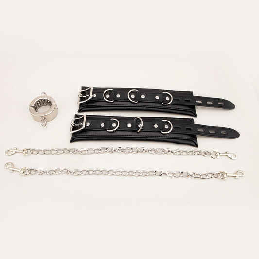 Stainless Steel Testicle Humbler with Leather Ankle Cuffs