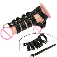 Dress your cock and balls in this kinky black leather bondage cage.